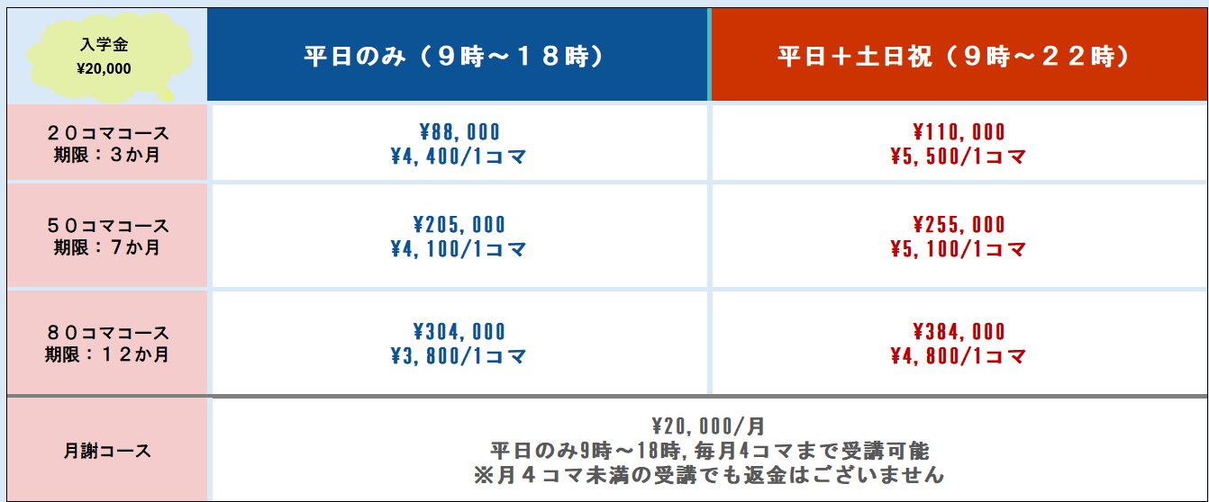 ※体験レッスン受講可能開始時刻は、10:00-21:00 オンラインのみとさせて頂きます。